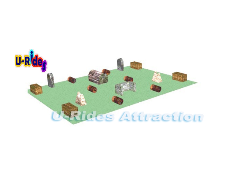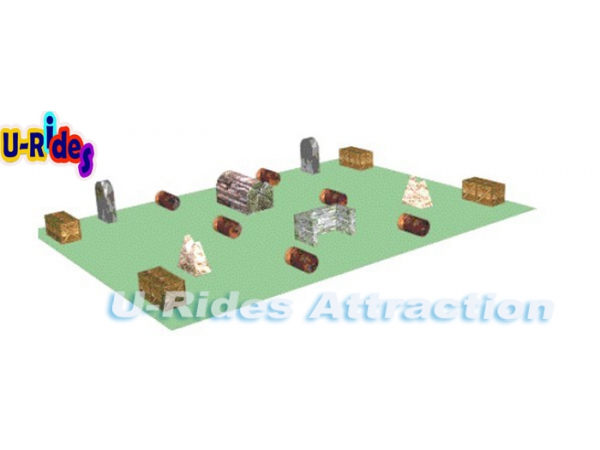 | Size | > 1 Tree log > 2 Giant tombstone >8 Box Shape 3*3*3‘ > 6 Oil barrel,40" H‘ x 25"D‘) > 2 Rock shape, 4.5‘H > 1 u shape > basic repair kit, bungees included Total 20 Smart-Bunkers |