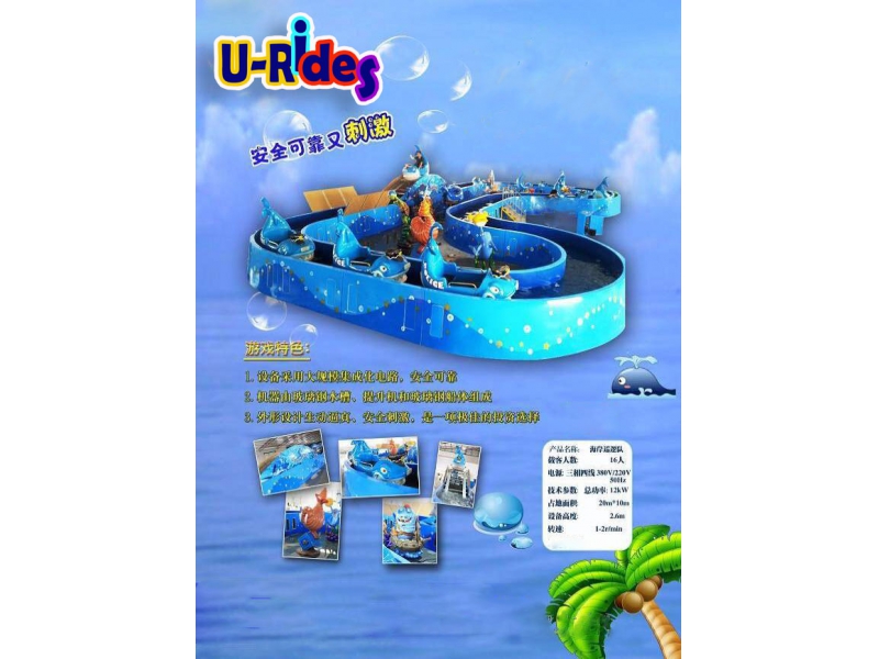 工作电压:380V 最大功率:18KW 载客量:12人(含儿童) 设备最大高度:3.5M 占地面积:20M x 10M(水道长60M) 总质量:35吨(含水重量) 速度:3-3.5分钟/圈 占地面积、水道长度及造型,可根据客户场地需要设计,两种上坡方式可选